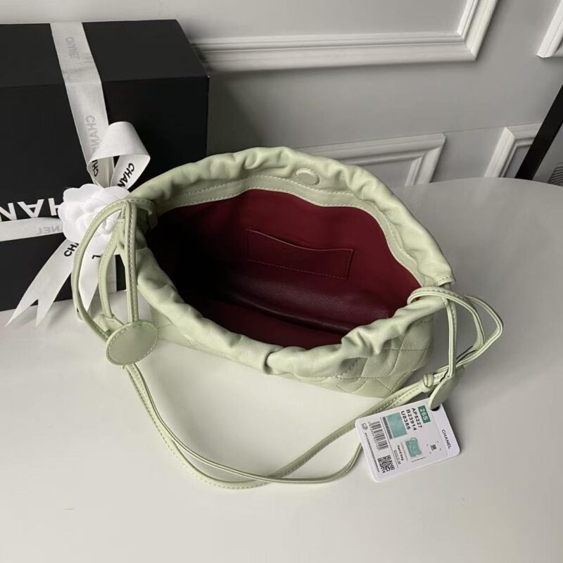 • Shape: A relaxed, slouchy drawstring bucket/hobo silhouette, a modern mini version of Chanel’s popular 22 Bag, designed for effortless everyday style.