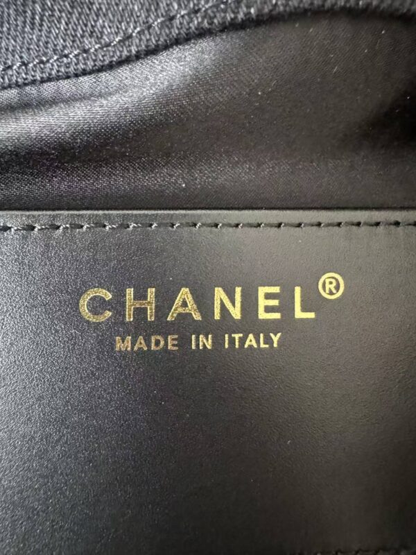- Bag Body: Crafted from black washed denim, featuring Chanel’s iconic Matelassé diamond quilting. The denim fabric has a natural vintage, worn-in finish, with a soft, slouchy silhouette that embodies the classic HOBO style.
