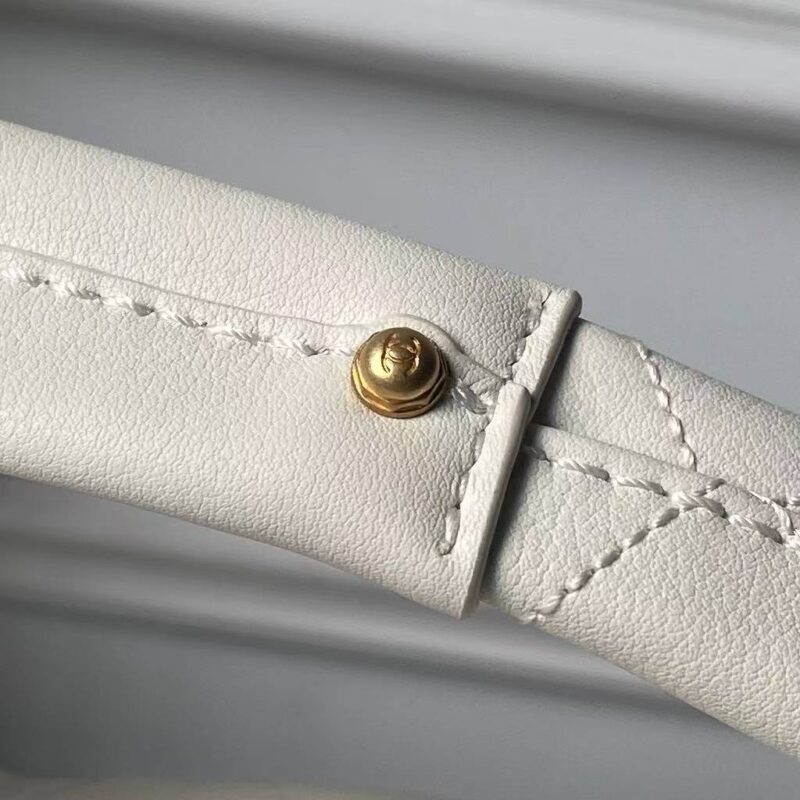 - Bag Body: Crafted from premium smooth, supple calfskin leather in a crisp, timeless white (ivory) hue. The leather has a soft, buttery handfeel and a subtle matte finish, offering exceptional durability and a luxurious, relaxed drape.
