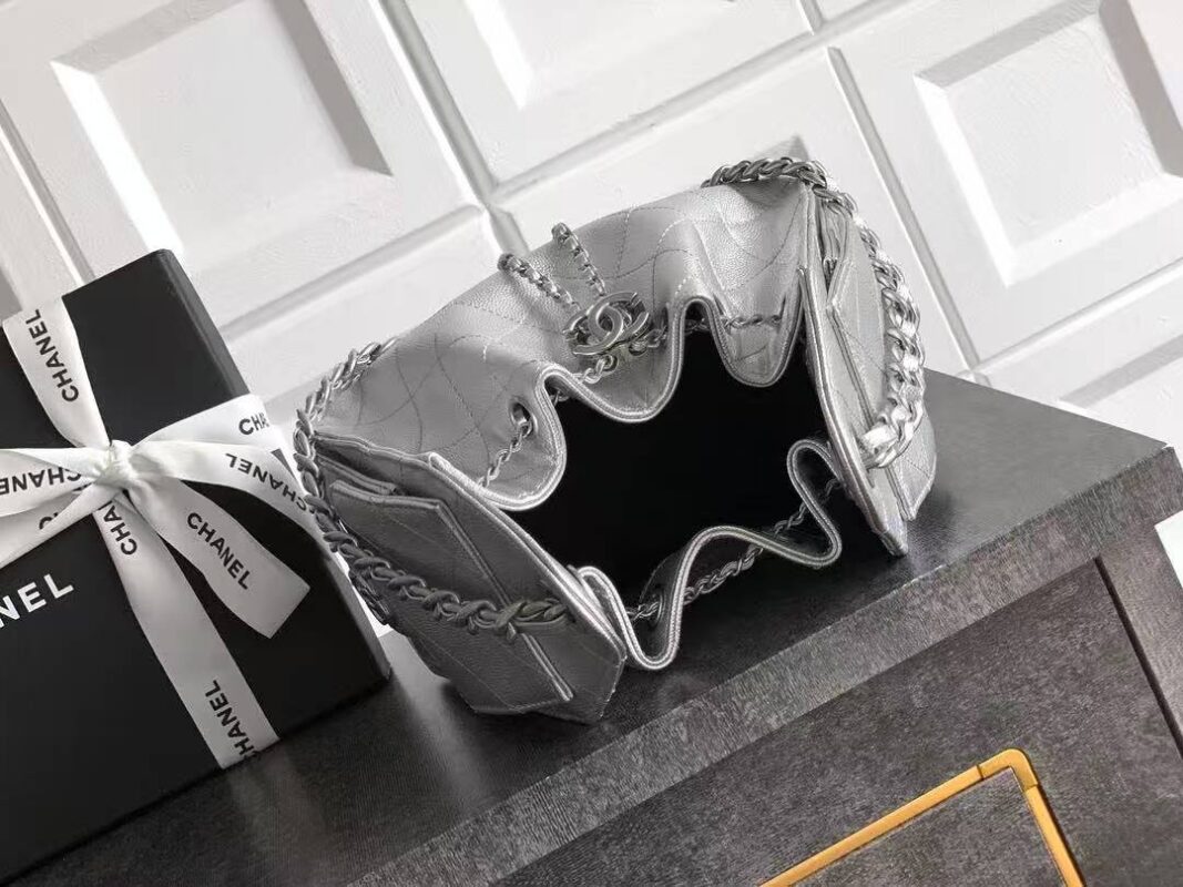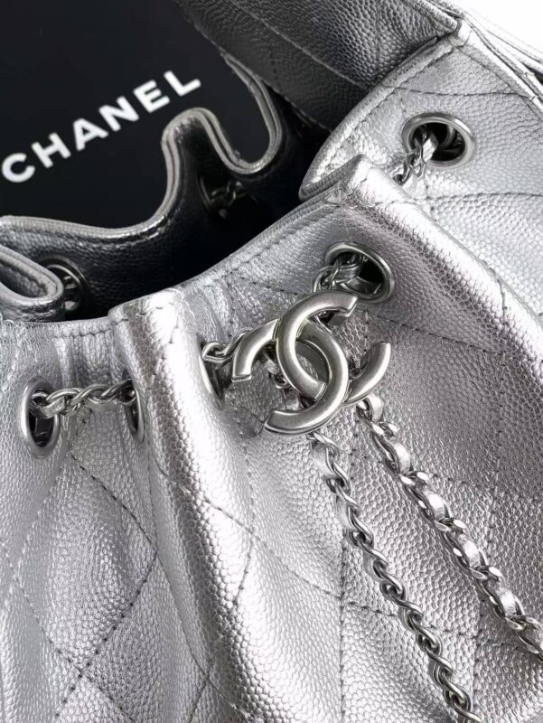 Chanel silver drawstring bucket bag
