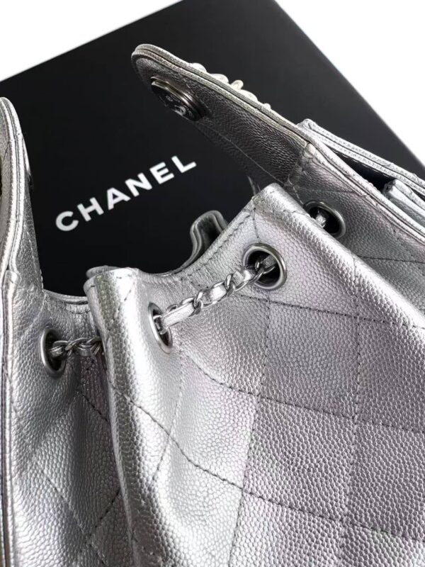 Chanel Silver Grained Calfskin Drawstring Bucket Bag
