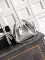 - Material & Craftsmanship: The bag is crafted from silver grained calfskin (荔枝纹牛皮), with Chanel’s signature quilted diamond pattern stitched across the body. The metallic silver finish gives the bag a sleek, futuristic glow, while the grained texture adds durability and a luxurious tactile feel.