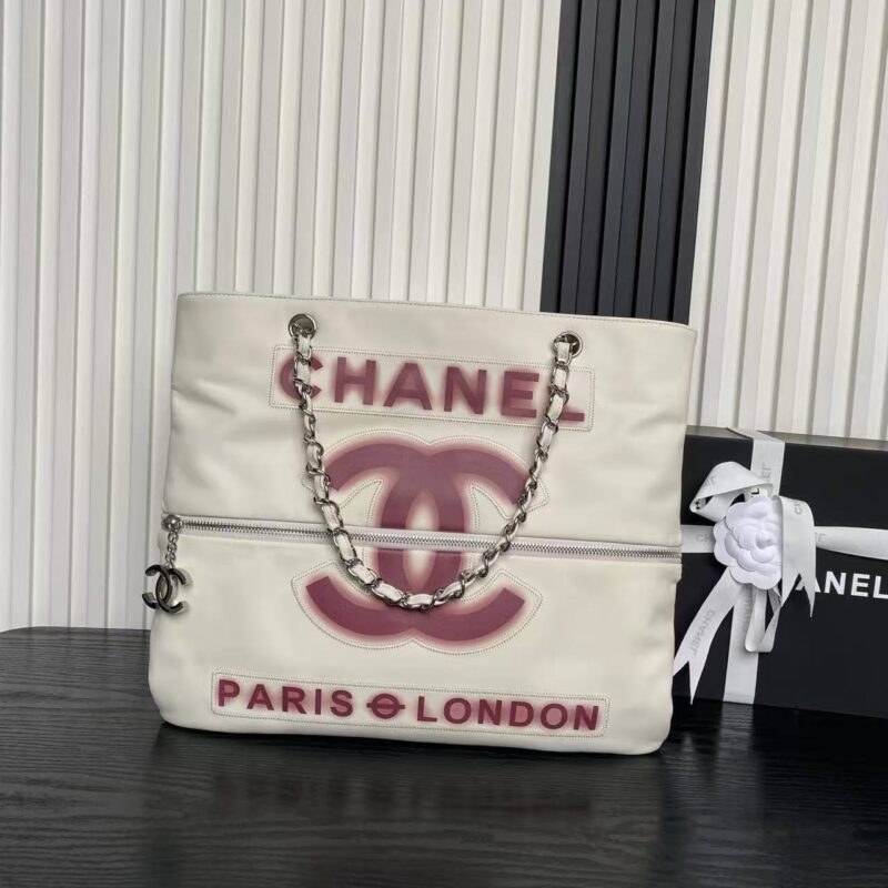 Featuring the iconic double C logo and PARIS ⊕ LONDON print, this tote exudes timeless vintage charm.