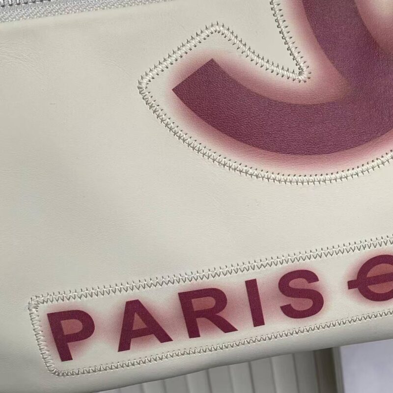 - The bag’s main body is cream white, with gradient rose pink (dusty rose) printed brand logos, creating a soft yet recognizable visual effect that embodies the popular “gradient graffiti” trend in recent years.