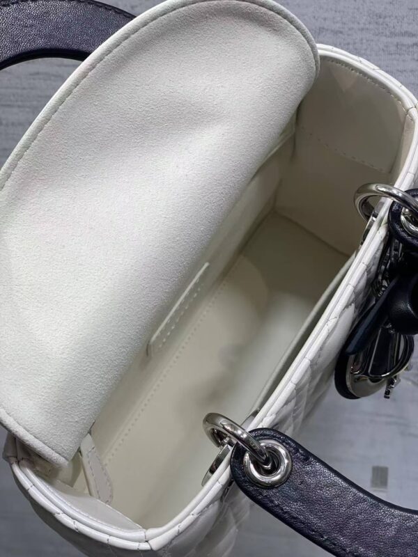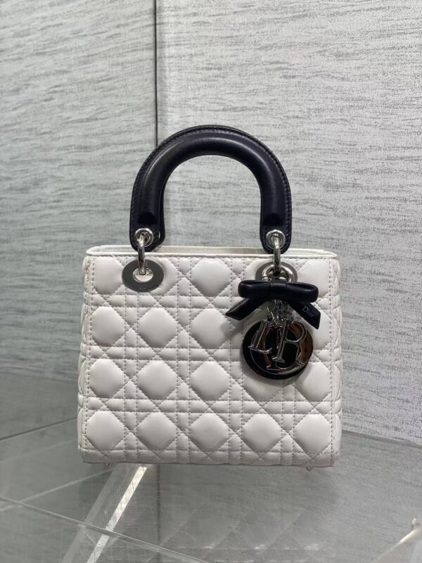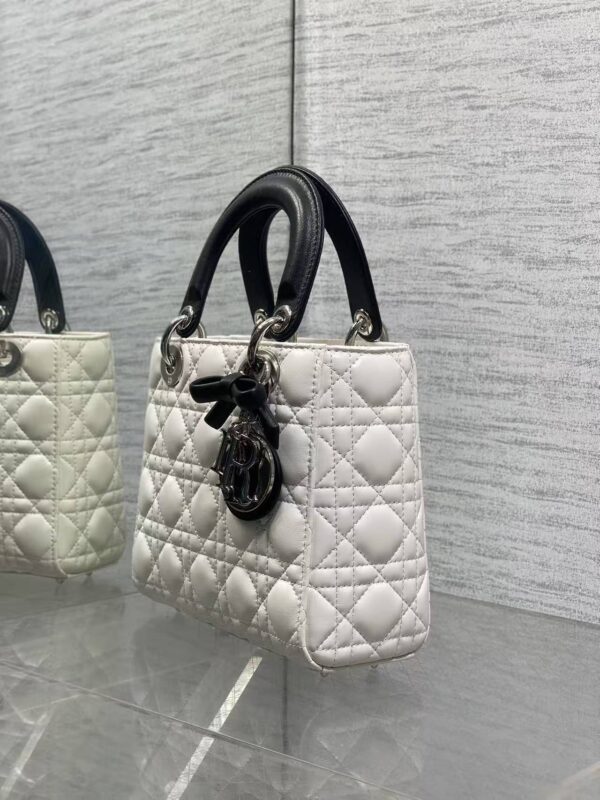 Panda Contrast Design: The bag boasts a pure white body paired with a solid black top handle. This black-and-white colourway, known as the “panda palette”, retains the elegance of the Lady Dior while adding a cool, versatile touch that complements a wide range of styling.