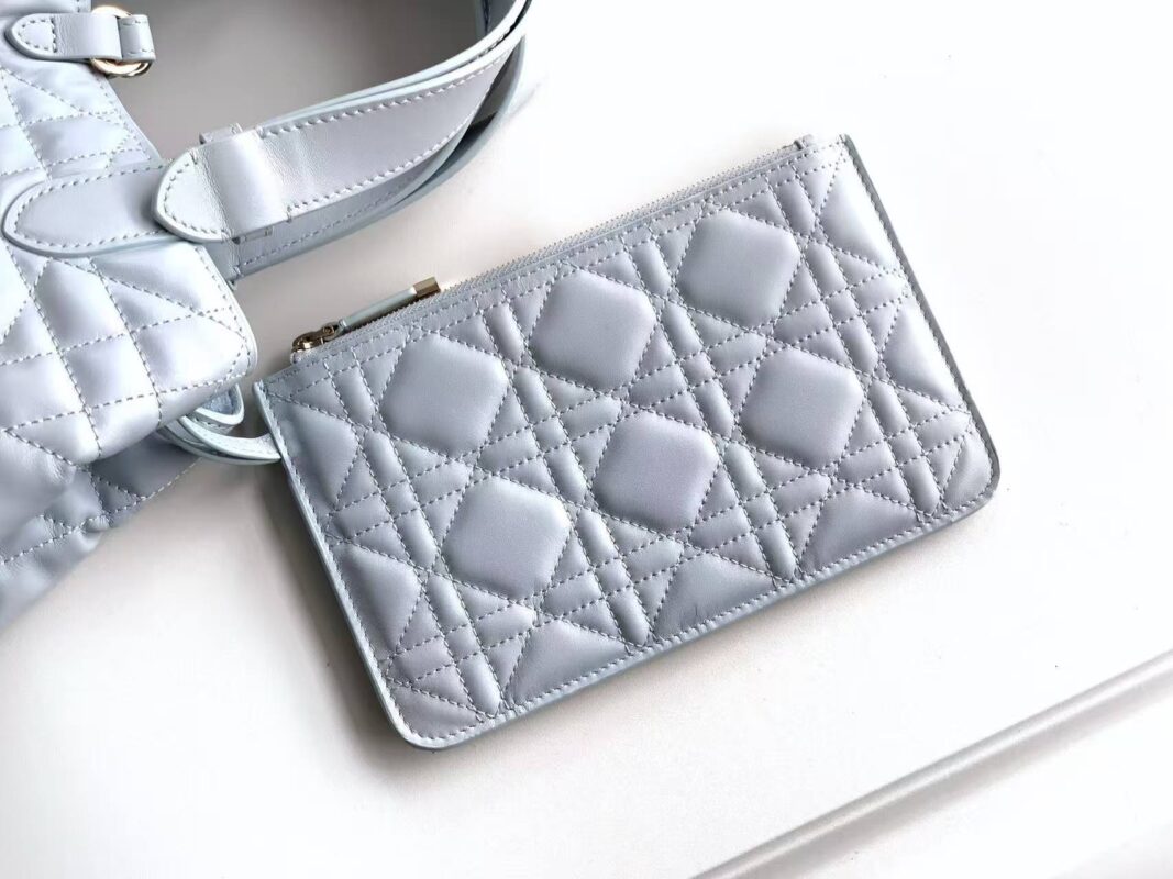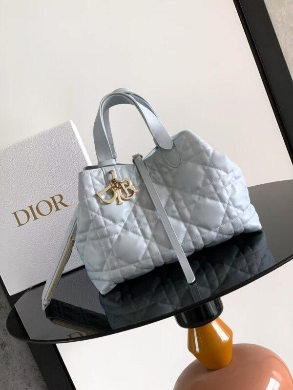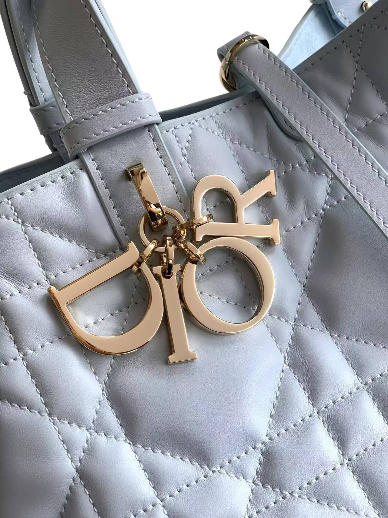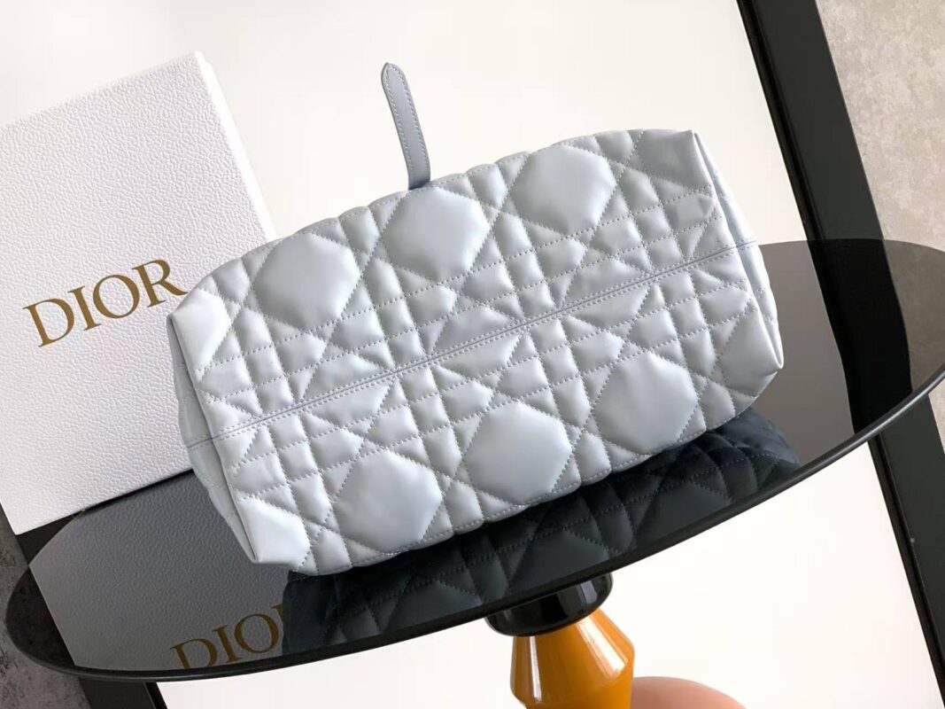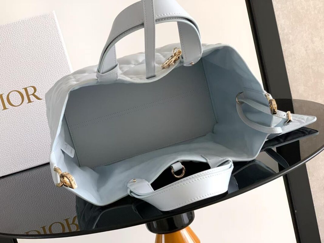 Dior Light Ice Blue Cannage Quilted Lambskin Tote Bag Crafted with Dior’s iconic Cannage quilting, this soft lambskin tote in dreamy light ice blue exudes timeless elegance. Versatile for hand carry or crossbody, it’s the perfect summer essential for both commuting and daily styling, blending luxury and practicality seamlessly.