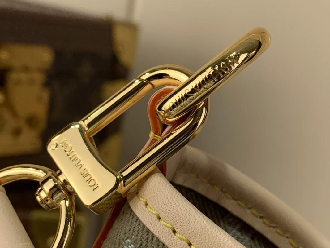 - Leather Trim: Natural Vachetta leather in a light beige tone, a signature LV material that develops a rich, patinated finish over time with use.