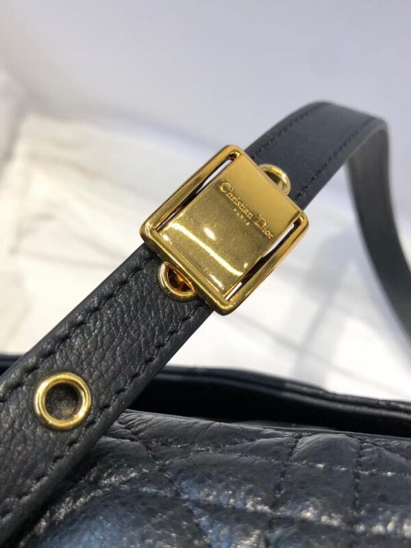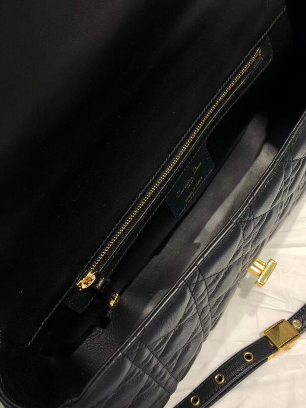 The bag’s body is crafted with Dior’s world-famous Cannage quilted pattern, a signature house motif, and made from supple, high-quality grained lambskin. The rich black leather boasts a luxurious matte finish, delivering exceptional durability and an incredibly soft, premium hand feel that only gets better with age.
