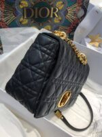 The bag’s body is crafted with Dior’s world-famous Cannage quilted pattern, a signature house motif, and made from supple, high-quality grained lambskin. The rich black leather boasts a luxurious matte finish, delivering exceptional durability and an incredibly soft, premium hand feel that only gets better with age.