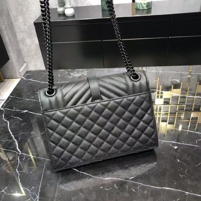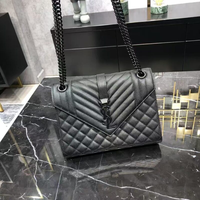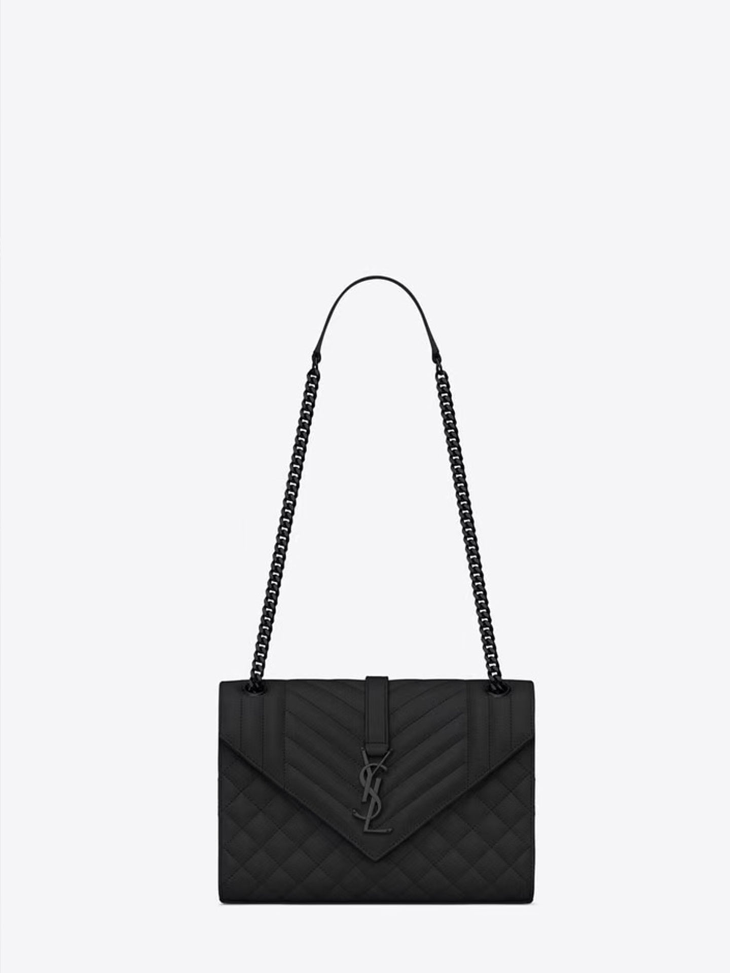 This is the all-black matte (All Black / Noir) version of the YSL / Yves Saint Laurent Classic Baby Doll / Envelope series shoulder bag. Unlike the brand’s classic gold-studded leather design, the picture shows a bag with an all-black configuration. It has a cooler style and a more modern urban feel, making it the top choice for trendy people and girls.
