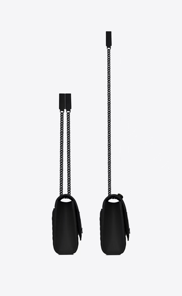- Hardware (Standout All-Black Feature): Equipped with Matte Black Hardware throughout. This is the core selling point; the prominent YSL logo twist lock and shoulder chain are both black, eliminating any shiny metal accents for a bold, edgy look.